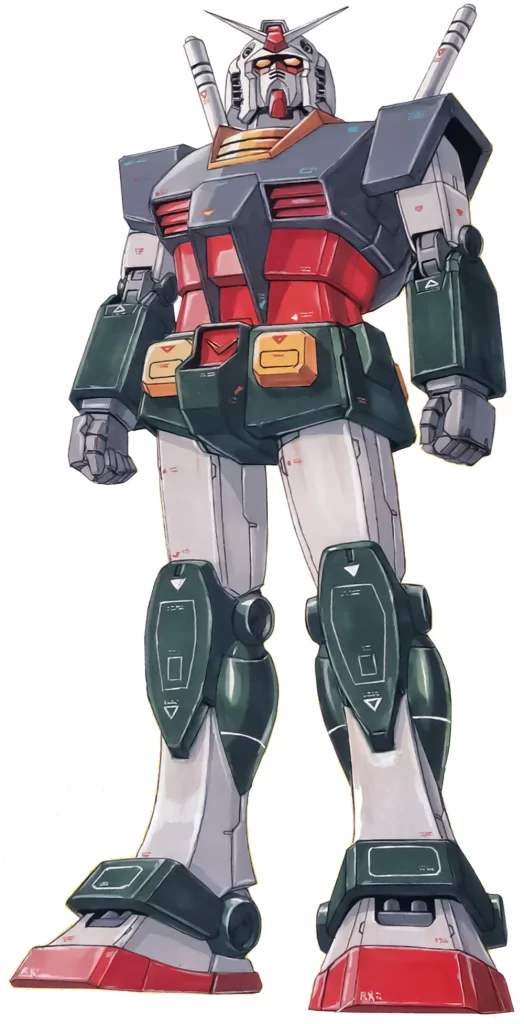 I absolutely love the art style of this series. This around the time that you start seeing more dull, realistic, and more detailed mobile suits. The original rx-78-2 gundam was originally supposed to be dull with colors (rx-78-2 real type shown in the pic below), but had to be changed to red, blue, yellow, and white to be more child-friendly for marketing. The creator of gundam wasn’t really happy about that lmao. By the time we get to war in the pocket, the gundam franchise is more established already giving the creators more freedom, so war in the pocket has more dull and less flashy of a look to it than some previous gundam anime, though the gundam itself is still the same colors since that’s what people know now.